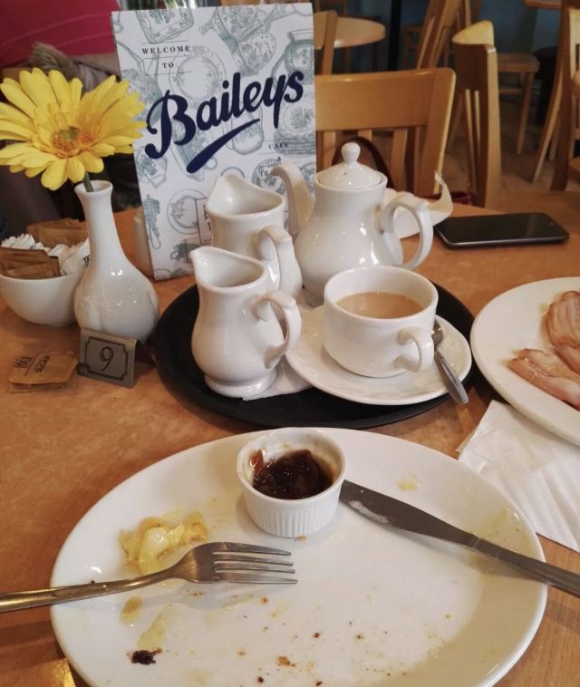 Baileys很棒的英式早餐,培根煎得金黄酥脆,很棒的口感,煎蛋也不错,最主要是咖啡很棒,整体风格很轻松,喜欢的~服务也比较好,沟通很方便!