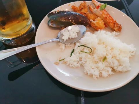 在海滩边上的一家很有人气的泰国菜餐厅,因为我们吃过了午餐,所以下午来这边我就点了一份螃蟹,一份空心菜,一分海鲜盖浇饭。环境也特别不错。