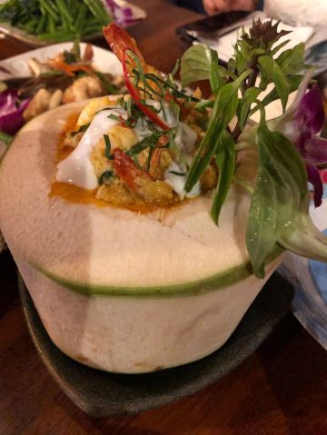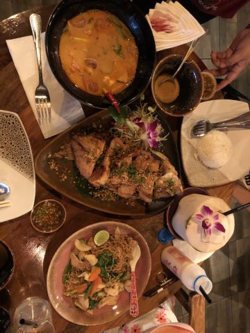 苏梅人气很高的泰国餐厅,店面比较大,很热闹,推荐菏泽鸡,冬阴功,烤红肉,味道确实很不错,推荐尝试。