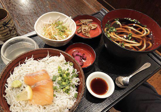 为了吃晚饭,我们决定像去荞麦面一样在川越屋前停下来。工作人员非常友好,让我们决定在哪里摆桌子。白子和荞麦面是这里的著名菜。我把它们都弄成一半半。它们看上去很小,但实际上它们很丰富。