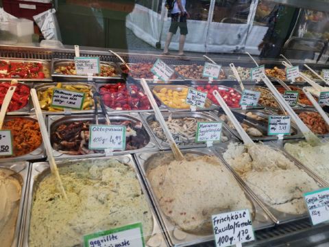 在Viktualienmarkt中,不同的摊位你能找到一切:啤酒、葡萄酒、新鲜果汁、土豆餐、香肠、生蚝。中间的啤酒花园在天气晴好的时候很多人光顾,是品尝白香肠或者煎肉饼的好去处。这里有吃货们喜欢的美食街和市场,坐在路边摊喝着啤酒,或者拿着一个德国香肠边走边吃,都是非常惬意的!