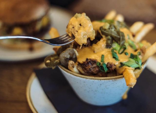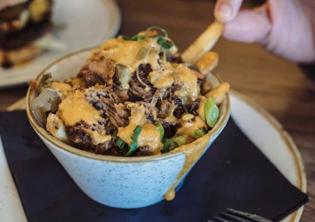 点了炸鸡burger, 用不不是鸡胸肉,这点给赞。总体可以,就是面包太厚太抢戏了。 相比墨西哥辣椒肉酱芝士薯条,比较喜欢这家的, 肉酱和芝士都是直接浇在了刚炸好的薯条上后,直接上桌了,所以入口的时候薯条还是脆的。 周末中午,客流量不断,但总体还是有空位,不需要排队。