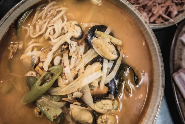 摆渡修行小店不大但是挺整洁,老板娘超级热情。菜好吃,量大价格又便宜,受欢迎程度真的是杠杠的。上周日让胡子去买个炸鸡外卖,5点半过去(5点开门)店里已经差不多满了,一边还有和胡子一样等打包带走的。 - Korean Fried Chicken:招牌菜,一般会让胡子跑去买了带回家吃。甜辣酱调味真的不错。之前试过其它家炸鸡,酱的味道上比这家aisa imbiss的差了点。面衣是厚款,脆感不错,鸡肉肉质比最早吃的时候嫩了蛮多,配上面衣还是属于有嚼劲的那种。18欧一大份,适合2-3人分着吃。 -Jjam ppong:炒码面,这份辣味海鲜汤面太适合寒冷的冬季。汤头辣度有些高,虽然老板娘觉得只是普通辣度,热乎乎的辣汤,配上好多海鲜和挺筋道的面条,满足。10欧一份。 - Sam Gyeob Sal:韩式烧烤五花肉,冷冻五花肉,端上桌时厚肉片还是有点硬的。肥肉看着挺多,配上菜和酱解腻不少。一套烤肉还带了几个泡菜,大白菜那款好爱啊!13欧/人,两人起点。图里2人份。 - So Go Gi Bibimbap:韩式牛肉拌饭,好大一碗,量足内容也多。蔬菜丝儿配上腌制烧好的牛肉块,甜辣味酱拌着,好吃呐。10欧一份,附带小泡菜。