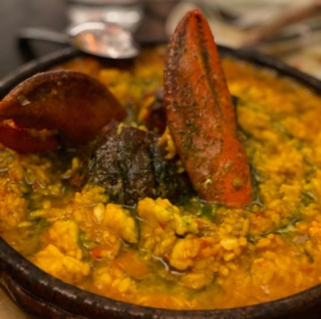 Sr.Fado炙烤香茅鸡佐九层塔,入口微甜,香气浓郁。 不用沾酱,就很好吃。美洲鳌龙虾烩饭威武霸气YYDS。龙虾烤出的汤汁被米饭吸收,超级鲜美。