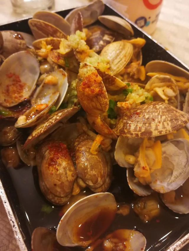 餐厅装修特色化,墙上贴有世界各地的钞票,菜品价格实惠,海鲜美味。