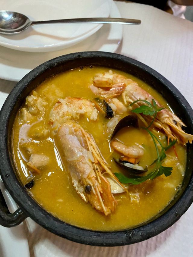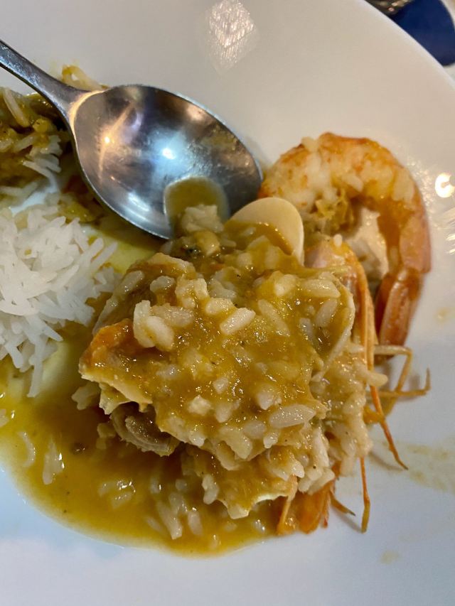 店里墙上有各国纸币 可提前预约,只收现金 Seafood Rice 海鲜饭 - 一人份14€ 里斯本特色,就是把虾,海虹,螃蟹一起炖,在加米饭 烟台人觉得没什么特别的,就是海鲜乱炖
