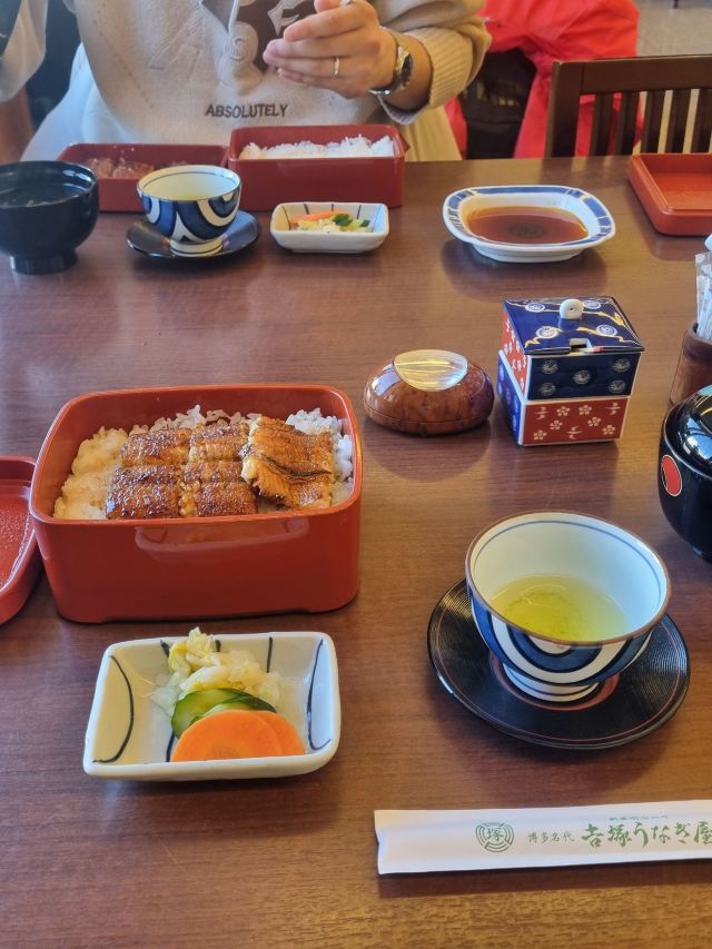 EllieLei嚟到福冈,点都要试吓地道老字号嘅鳗鱼饭。上网一search,成堆人都推介呢间开业超过140年嘅「吉冢うなぎ屋(Yoshizuka Unagiya)」,喺博多站附近,交通又方便,梗系即刻mark低! 鳗鱼饭食感分享 叫咗个上鳗重(特上),卖相超靓,开盖即刻闻到阵阵焦香味。 • 鳗鱼外脆内嫩,烧得岩岩好,冇腥味,啲油脂仲渗入白饭,超级正。 • 酱汁唔会死咸,味道偏清爽啲,啱啱好唔会抢走鳗鱼香味。 • 饭粒分明但唔干,好食得嚟又唔会腻。 • 仲有埋吸物(汤)同腌菜,清口解腻,平衡晒。 环境 & 服务 • 装修系传统日式风,楼上楼下都有位,店内好干净舒服。 • 服务一流,店员好有礼貌