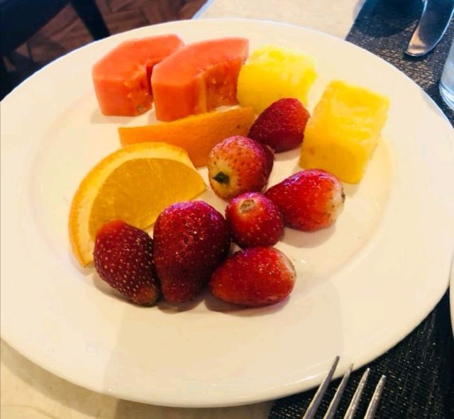 酒店游泳池边上的早餐店,每天在心里吃早餐很棒哦,游泳池人一直不是很多的,早餐还不错,西式的,主要水果很不错哦,东西也多哦。