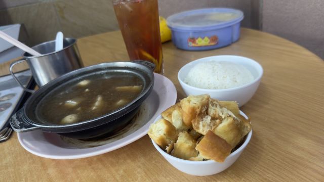 肉骨茶OK,而且比起佑记好的是可以直接点肉骨茶就有大杂烩,不用一个一个点。 油条有点软,如果是脆脆的蘸肉骨茶会更好。 猫山王冰淇淋拯救了快中暑的我🥹