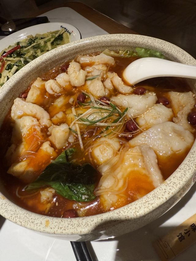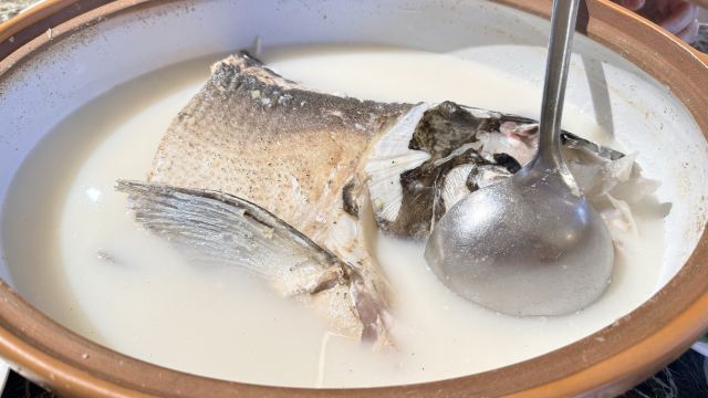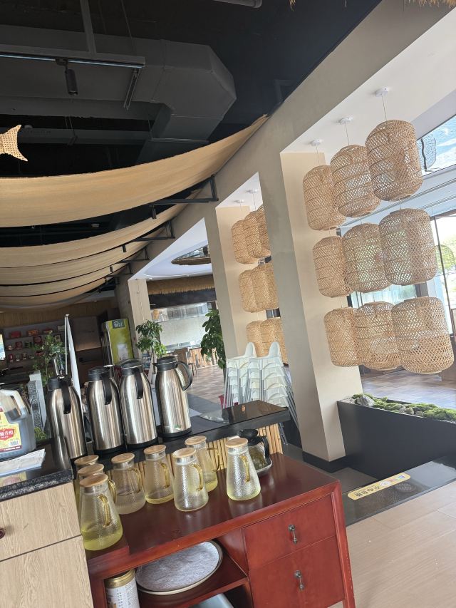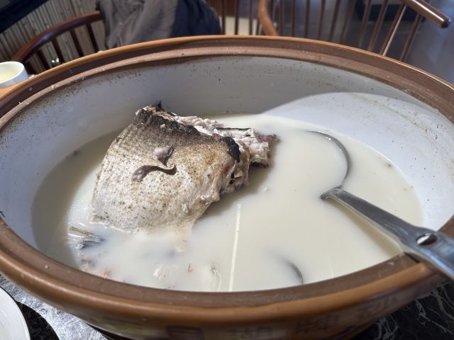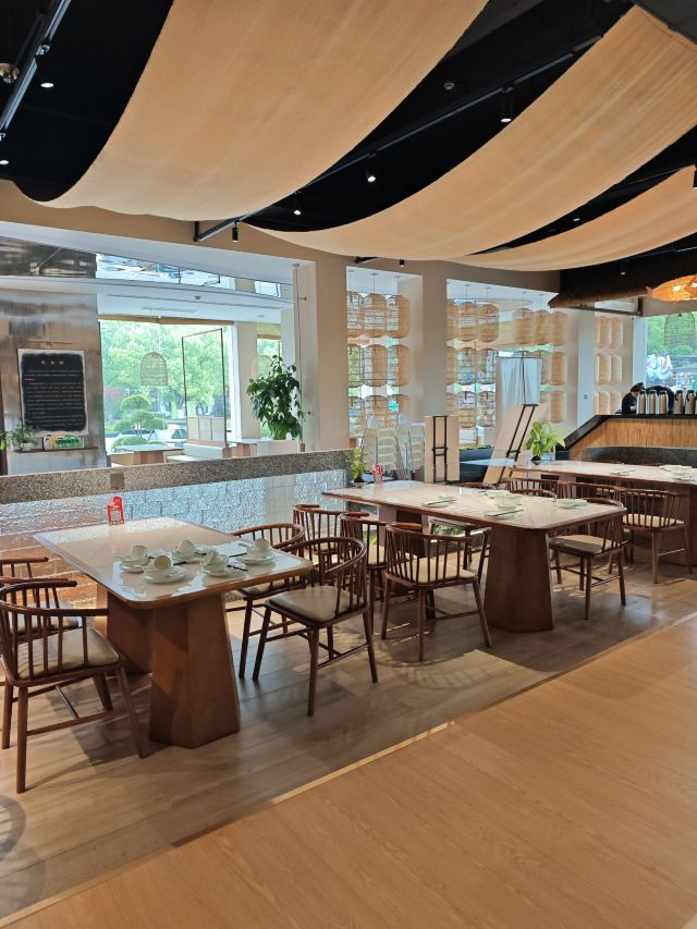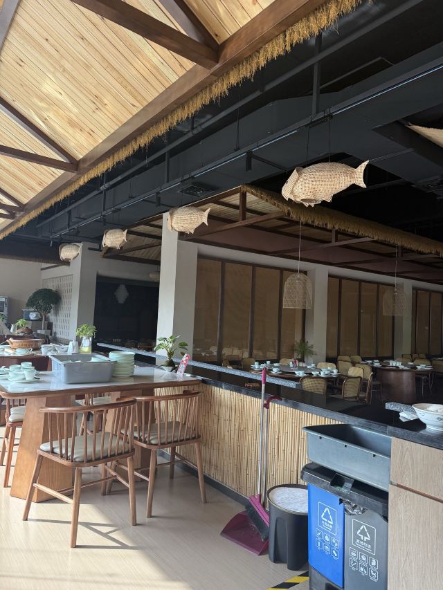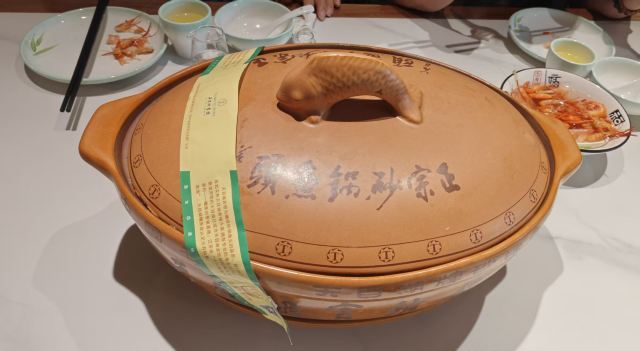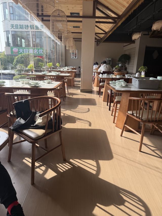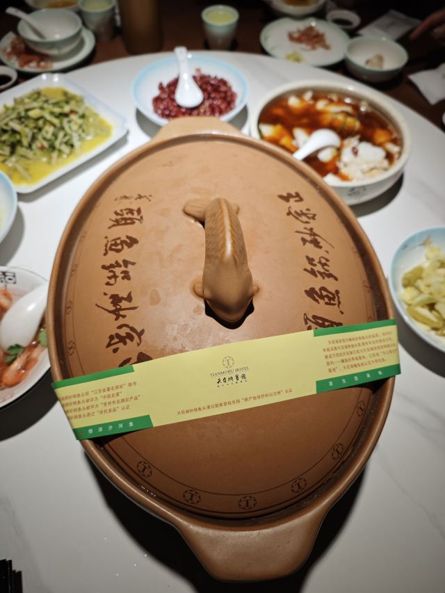 天目湖景区唯一的五星级宾馆中餐厅,虽说是配套餐厅,做的味道实在是赞。招牌菜就是响当当的大鱼头汤,砂锅的尺寸让所有人都惊讶,汤是用时间精心熬煮,呈现出牛奶一般的色泽和相当顺滑浓郁的口感,最后吃一点当地的乌米饭喂饱自己,其他的菜肴若是再尝试,就一点鲜味都没啦。
