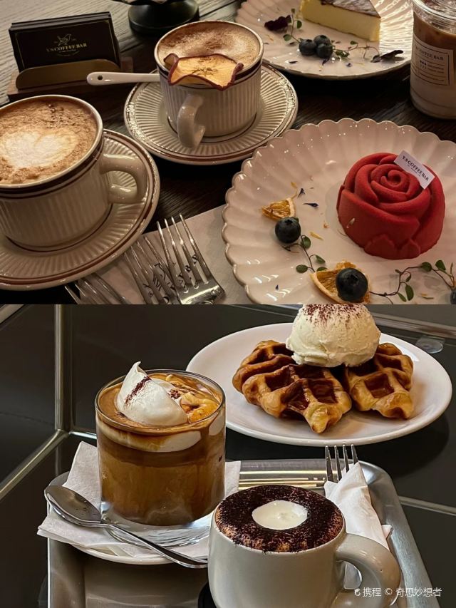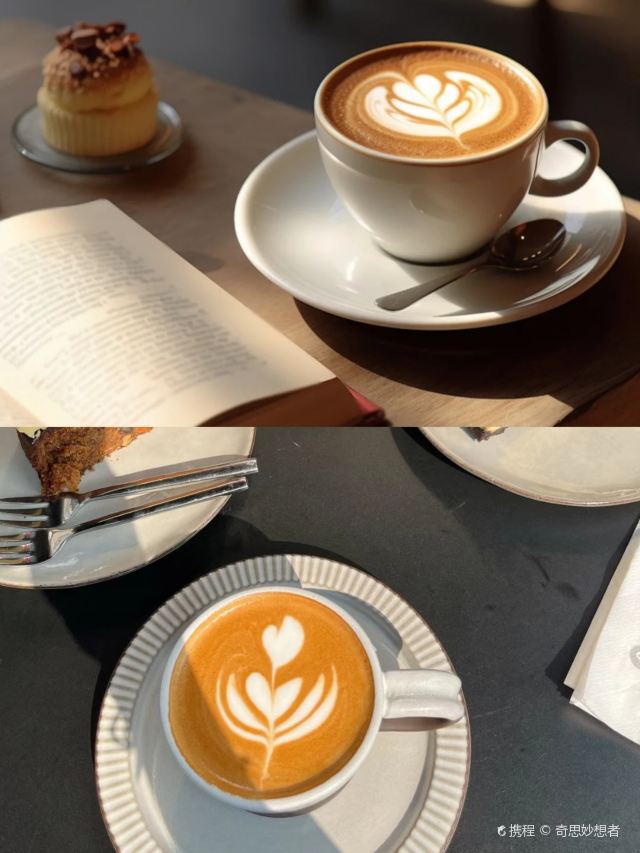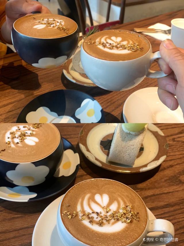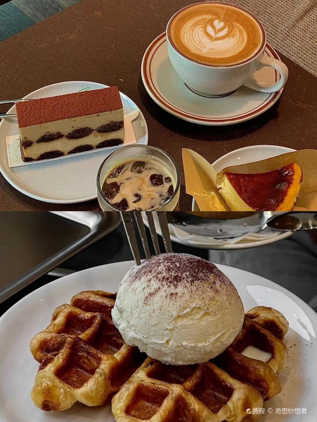 奇思妙想者种草了很久的这家甜品店终于去了! 点了他家招牌舒芙蕾跟咸蛋黄厚芋泥方方 舒芙蕾是现做的端上来的时候还duangduang的我们要的是冷萃茉莉口味的个人觉得还蛮好吃的有淡淡的茉莉香味舒芙蕾本体也没有蛋腥味 空口吃舒芙蕾本体也很好吃 咸蛋黄厚芋泥方方我朋友刚开始听到有咸蛋黄还不准备点但是在我的坚持下点了这个吃了之后说还挺好吃的咸蛋黄十芋泥 谁能不爱这个搭配! 饮品我们要的是黄油啤酒玛奇朵和桃乐梅生椰拿铁 黄油啤酒跟咖啡的搭配很奇妙喝的时候最先接触上层的热咖啡 喝的时候需要大口喝牛奶 啤酒 咖啡的味道才会很好融合喝的慢的话到最后会有黄油的浮渣感觉有点影响口感 个人比较喜欢桃乐梅生椰拿铁上层是咖啡下层是芭乐需要先搅拌之后再喝才能将咖啡跟芭乐的味道融合一下芭乐酸酸甜甜也可以减少一点咖啡的苦味 我们是大概快两点到店里的刚开始没有太多人但是到了大概四点左右店里就会坐满不想等的姐妹可以去早点~#高颜值甜品店 #拍出氛围感 #旅行#笔记灵感#小众旅行地 #西安必打卡 #城市人文手记