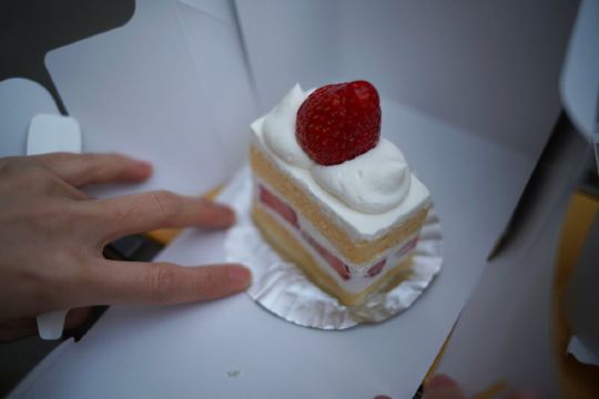 Ganso Sea Grapes转角遇见一家蛋糕小店,卖草莓奶油蛋糕,和刚出炉的牛角包,就买了拎去附近的小公园吃。 “牛角包…真香啊。” 朋友把整个脸都埋进了袋子里。我不信邪地吃了一口——要命,它家的牛角包真的特别的香,我绕着小公园遛了四圈,嘴巴里还是香的。甜丝丝的黄油香气散也散不掉。 草莓奶油蛋糕,是真材实料的好吃!草莓很大颗,蛋糕质地绵密,蛋奶的香味儿特别足!奶油也是特别厚重的那种,带着油脂的香气,一口下去幸福肥。