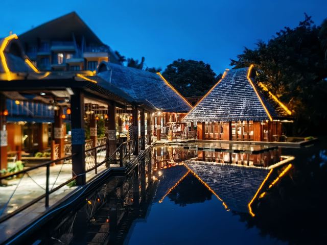 小伙伴明天就要返程了 临了想再吃一顿当地特色菜 找到了这家位于万达嘉华酒店里的|沿江海南菜·文昌鸡祖师爷·黎家宴(海棠湾店)^ 餐厅位置极好 几栋小茅屋的造型 就在泳池边上 一旁是绿植 一旁是景观水池 环境特别好 看了一下 还是家当地老字号 很多名人明星来他家吃过饭 做的是海南当地特色菜 糟粕醋海鲜 酸酸甜甜 椰子饭 芒果粉肠都是很有名的当地小吃 文昌鸡不可或缺 再配上一袋竹篓椰奶 堪称完美