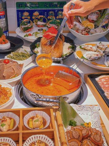 YoYo_0N7M8U7A作为正宗的文昌铺前人,ZZZ离不开的就是正宗的文昌铺前糟粕醋!可惜不在家不能时时刻刻吃到,但是这家糟粕醋店完全满足了我对家里糟粕醋的想念! - 深蓝色的环境,🛶船型的屋顶造型,就很有琼式老码头的感觉⚓️,一下梦回在渔排上的生活~ - 💡店名:太琼百年糟粕醋海鲜火锅 📍地址:亚龙湾百花谷商业街二楼(华宇度假酒店旁) ⌚️时间:11:00-22:00 - ⭕️糟粕醋酸汤火锅 微辣中带着酸甜味的糟粕醋,味道吃起来巨爽! 是正宗的糟粕醋该有的味道,鲜、酸、辣、开胃、爽滑 汤底味道浓郁,一口一口喝着老得劲了 - ⭕️发财海发菜 糟粕醋当然少不了灵魂搭档海发菜,只需要涮几秒就可以吃了 吸满糟粕醋汤汁后非常入味,浓郁中还带点脆爽的口感,让人十分上瘾 - ⭕️海鲜拼盘 海鲜的种类很多,有八九种,都是当日新鲜打捞上来的 深海和牛海甘草涮糟粕醋好绝!鲜嫩入味,可以再吃一份