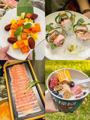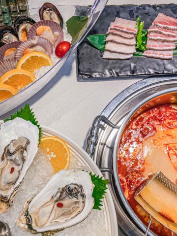 青芥末沙拉生蚝,发财海发菜,太琼秘制脆皮乳鸽,卤味带皮小黄牛,原切雪花肥牛,海南椰子饭,海鲜拼盘,芒果糯米饭,糟粕醋火锅