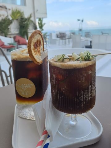 据听说是天涯镇咖啡☕️的扛把子。特意来打卡。 景观确实不错,无敌270℃纯海景。(就是玻璃稍微有点脏)。洞穴风格的室内装修加上,纯白的大平台。确实不错的感觉。 没有吃饭,喝了两杯咖啡☕️ 就饮品而言,也挺有创意的了。|咖啡咸柠七^推荐推荐!!!! 工作人员小哥哥小姐姐很热情的。 如果来天涯镇旅游的朋友们,推荐值得打卡一次呀。