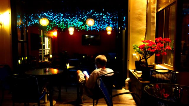 咖啡厅位于盛世新第大楼顶楼,地理位置绝佳,室外露台被装饰城极有情调的木质小吧台,做在高登脚上眺望,目光所及之处尽是180°广角无敌海景。日暮时分,在此地喝上一杯咖啡,配上一块芝士蛋糕,仿佛置身天堂。晚上咖啡厅变身迷人酒吧,有乐队驻唱,氛围更佳。