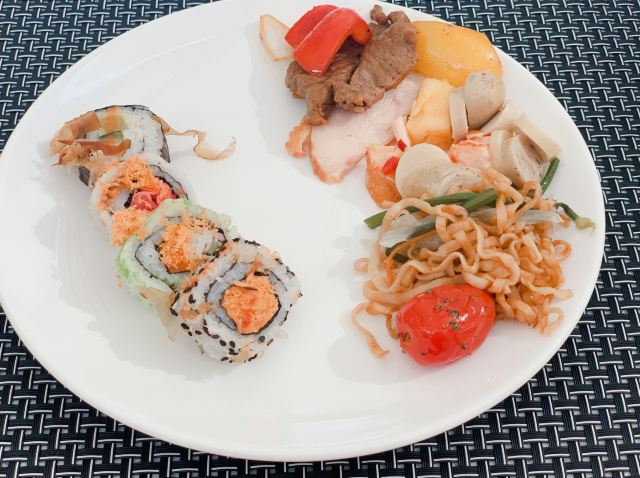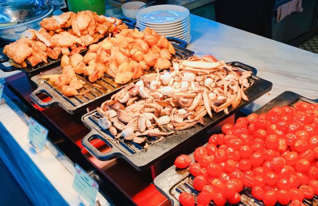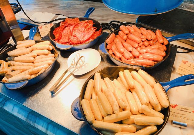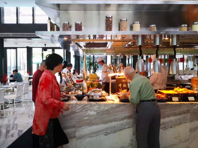 横竖是二温小迪🌸洲际的早餐地点就是地中海餐厅,在这里连住了三晚,对早餐还是挺满意的。除了品种比较丰富外,每天的菜品都会有所变化。 🌿环境:餐厅建在靠海的玻璃屋里,浅色的大理石餐台,配上白色系的桌椅,还是挺有高级感的。早餐人很多,中午人就比较少。 🍽菜品还是非常丰富的,中式的有热炒,面条,油条,粥面等等,甚至还有煎饼果子。西式的有麦片,肉肠,培根,薯条,煎蛋,三文鱼,熏肉,西点等等,连日本寿司也有。果汁饮料选择也挺多的,还有酸奶,茶,咖啡。水果得品种每天都不一样,甜品除了冰淇淋,西点,还有清补凉。 👩🏻🍳洲际的服务还是相当不错的,工作人员的服务意识都很好,主动又不失分寸。 唯一不舒服的就是我觉得餐垫不太干净,早餐这人流量,餐垫抖抖就算清洁过了嘛。
