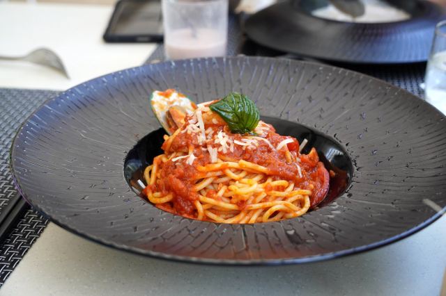 SEA PAVILION地中海餐厅|三亚半山半岛洲际度假酒店 三亚半山半岛洲际的地中海餐厅是酒店的主餐厅,位于主楼前的沙滩边。这里提供自助早餐以及午/晚正餐,室内外都有座位。 值得一提的是,餐厅推出了不少团购套餐可以选择,人均150元就点到三道式西餐或是中餐炒菜,是性价比之选。 这里有宝宝喜爱的意面套餐,我们的一顿午餐就选择了这里。一人份套餐含色拉🥗+蘑菇汤🥣+意面🍝+一杯饮料🥤,味道与份量都恰到好处。 📍坐标:三亚半山半岛洲际度假酒店 💰价格:人均150元