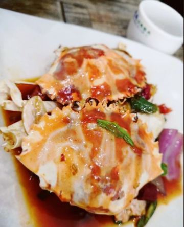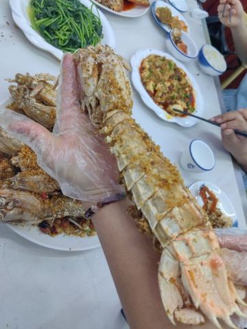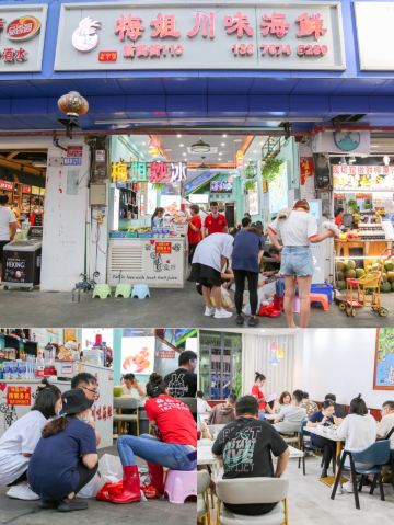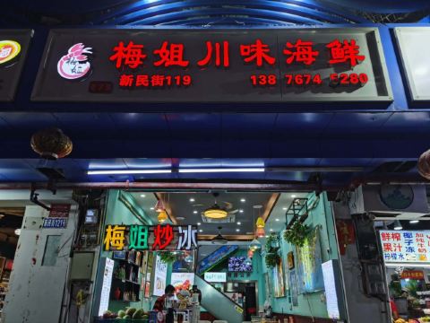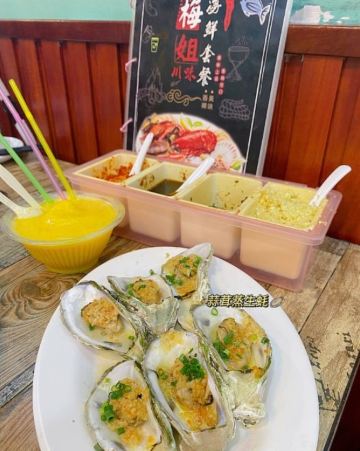 MEI JIE每次来三亚必打卡的海鲜大排档🦞算是三亚名副其实的老字号店了,有很多店哦,所以不需要担心距离问题,而且海棠湾也有店了[胜利]他家的味道实在太喜欢了,很地道的川味,特别是麻辣鲜甜的香辣蟹,简直了[吐舌]蒜蓉粉丝蒸扇贝的肉很多,吃起来汁水四溢,还有爆炒芒果螺超级入味,白灼的基围虾非常的鲜甜,总归食材很好,配料也很赞,再加上配上梅姐家独家蘸料,好吃到根本停不下来,恩,简直就是舌尖上的中国! Tips:梅姐家秘制辣椒酱真的天下一绝,我是每一种都会放一点,最后挤上几滴柠檬,爽歪歪~