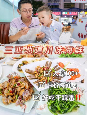 酸奶有点甜xq前几天刚和老公孩子去了一趟三亚,除了享受椰风海韵、碧海蓝天以外,每次我们都会安排一顿丰富的海鲜大餐🦞 三亚遍地都是海鲜,街边的各种海鲜餐馆抬头可见,价格不一,良莠不齐,再加上曾经的海鲜店宰人的负面报道,让很多人到了三亚不知道去哪吃,怕被宰或者是怕吃的不新鲜! 我们每次都会去这家,吃海鲜选她就对了! 🔍店名:梅姐川味海鲜(第一市场总店) 📍地址:三亚新民街119号 ⏰营业时间:10:00-22:30 💰人均:100+(丰俭由人) 🌶️梅姐海鲜是资格的川味辣炒,她老公就是四川人,很是适合我这个四川胃!现捞现称的海鲜不宰客,推荐我这次去点的菜,亲测不踩雷! ✔️白灼虾️🍤 考虑到孩子要吃,这次选的白灼这种吃法,原汁原味,最大程度的保留了虾的鲜、甜、嫩,蘸上老板的独家秘制蘸料,简直绝了,儿子一个人几乎吃掉了半盘! ✔️芒果螺🌶️ 辣炒芒果螺非常入味没有腥味,儿子第一次吃辣炒的,一边喊辣一边吃,每一口都是让人欲罢不能的美味。 ✔️清蒸石斑鱼🐟 石斑鱼最适合的做法还是清蒸,梅姐家的鱼鱼皮厚实,满满的胶原蛋白,蒸鱼汁儿调得刚刚好,完全保留了鱼的鲜味儿! ✔️海胆蒸蛋🥚 专门给孩子点的蒸蛋,十分滑嫩没有任何怪味或者腥味! ✔️辣炒蛏子🌶️ 我的最爱辣炒蛏子,足够的火候加上辣椒🌶️和各种调料,将香麻辣味同时激发出来,加入川辣元素的蛏子就是这么好吃。 🌟还有蒜蓉粉丝扇贝、鲍鱼和生蚝🦪这些每次必点,粉丝和蒜蓉简直就是绝配,鲍鱼肉质很Q弹,一口一个鲍太香了‼️ 被我一口气吃完了超级正宗。 ✅在三亚平价又好吃的海鲜难得可贵,梅姐海鲜海棠湾也有店,如果去逛免税店的话就去海棠湾那边,真的炒鸡好吃😋 三亚美食丨三亚海鲜丨三亚必打卡|网红酒店|三亚美食丨三亚攻略丨三亚探店丨三亚拍照丨三亚旅游