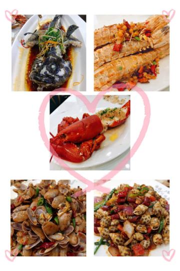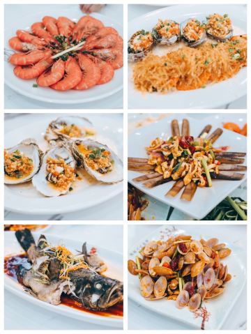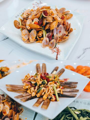 香辣蟹,海胆蒸鸡蛋,爆炒芒果螺,蒜蓉粉丝蒸扇贝,清蒸石斑鱼,基围虾,川味海鲜,椰子饭,长街蛏子,和乐蟹,皮皮虾,四角豆,龙虾粥,圣子,五指山野菜,带子,黑蒜烤生蚝,海虾,鱿鱼,椒盐皮皮虾,蒜蓉鲍鱼,清蒸开背大龙虾,椒盐虾,苏眉鱼,海瓜子,海鲜