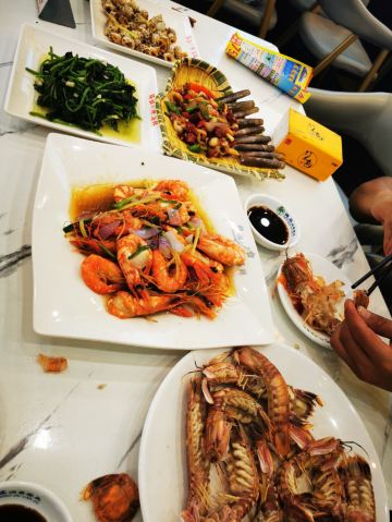 YoYo_2C2J2C1E来三亚好几天,都住在第一市场附近,每天晚上热热闹闹的,晚上男票说要来打卡最近很火的梅姐海鲜,我说好呀,随即高兴的就来了, 很遗憾来的有点晚,海鲜市场刚刚关门,无奈之下只告诉巷子里的水产店买海鲜然后再加工。 万万没想到,我们纯外地人居然被这家店黑了[捂脸][捂脸][捂脸]虾看着是鲜活的结果到手里就都死了不说,还多算了将近一百元!已知我一共才花了240元。。 结果到了梅姐门口,应该是梅姐本尊很英明的帮我指出了这些“猫腻”并且一样样帮我重新算账,帮我成功避坑啦,满心感激哈哈[笑脸][笑脸] 暂且不说菜品味道,此时都变得不那么重要(几种海鲜我们做了好几种吃法,男票说味道很好),光凭梅姐店做生意的理念,就活该一直生意红红火火[抱拳][抱拳] [服务铃]服务: 来三亚以来最佳 推荐推荐!