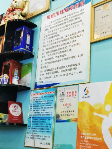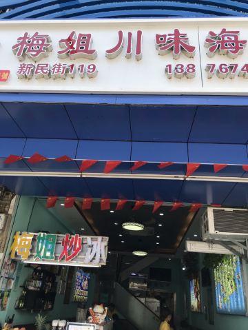 YoYo_0C6Z2J6C无数人强烈推荐的梅姐川味的炒冰,简直太合口味了,我们看着小姐姐做的,分量真的好大,一个炒冰碗堆得满满的小姐姐还使劲再往上加,吃一口真的是凉到心坎里,说的是冰但其实很软当然也很凉就是了,口味真的超级棒呀! 【口味】他们家的香辣味的东西真的好正宗哦,厨师就是四川的,我们去的时候他正好不忙,他还跟我们聊了一会天,老乡做的菜就是合我们的四川胃啊!对了,这里不得不提一下他们家的芽菜炒饭,简直太好吃了,我们四个人点了两份,全部都一扫光了,他们家用的芽菜是我们四川的,还拿出来给我们看了,据说是老板的姐姐自己在四川老家晒的芽菜,这个就是在成都也是能排到前几名的了,建议能吃辣的朋友一定要尝试一下,有点微微辣,真的好吃啊! 【环境】周围环境真的也就一般般吧,就像大排档一样,但是他们家我们看了看厨房的卫生和大厅的卫生都是能看出菜是用心打扫过的!吃他们家的东西还是很放心的 【服务】我们一落座就有小哥哥过来问我们几个人,然后就立马拿了开水过来帮我们烫碗,这点真的得好好夸一夸!上菜中途也会热心的问我们饭菜合不合口味!这样的服务在旅游城市真的是很贴心了!