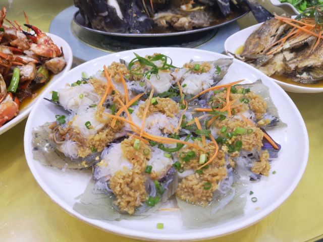 萨沙71来三亚的第一顿海鲜大餐,是那种自选称重的海鲜,请人加工,各自算钱的,不懂行的我们看见啥都想买,买了五六种,发现每一种不到一斤也会按一斤来算加工费,最后两个人花了近500元钱,不过真的是大饱口福了!