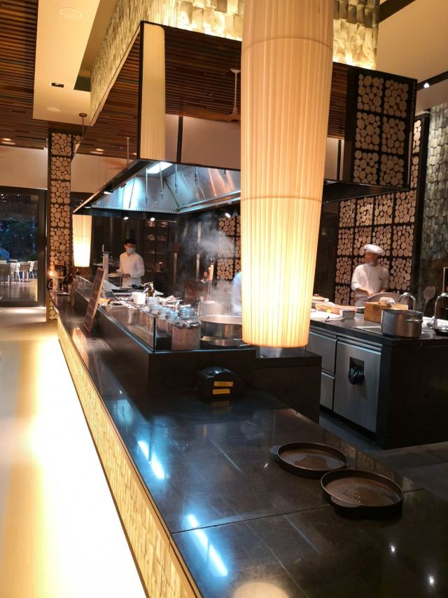 餐厅设计感十足,像是一个大型的艺术展览馆,大气富有品味。提供丰富的西式菜肴,食材新鲜,种类齐全。餐厅拥有开放式厨房,可观厨师制作过程。这里的出品运用了海南当地特色食材并结合了西式烹饪手法,极好诠释了融合之美。