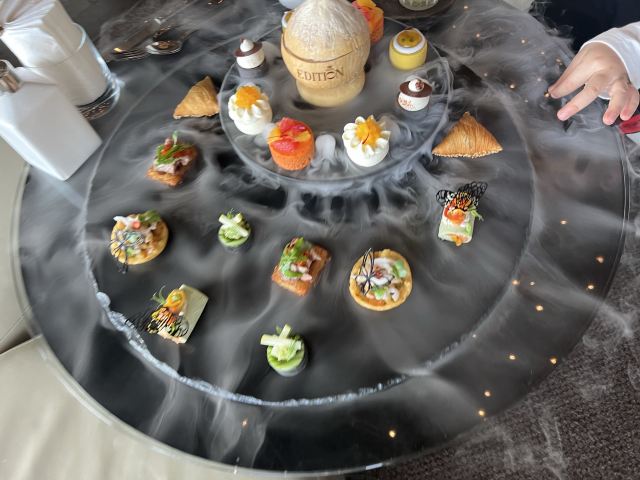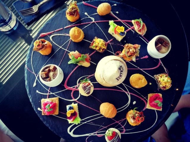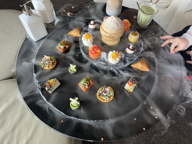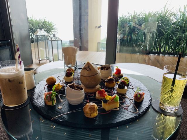 餐厅位于酒店的12层,私密性极好,靠窗位置可将美景尽收眼底。餐厅下午茶种类丰富,甜品搭配尤为用心,火腿和芝麻菜的结合颇为别致,口感惊喜。