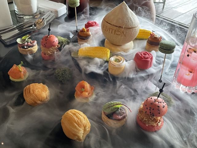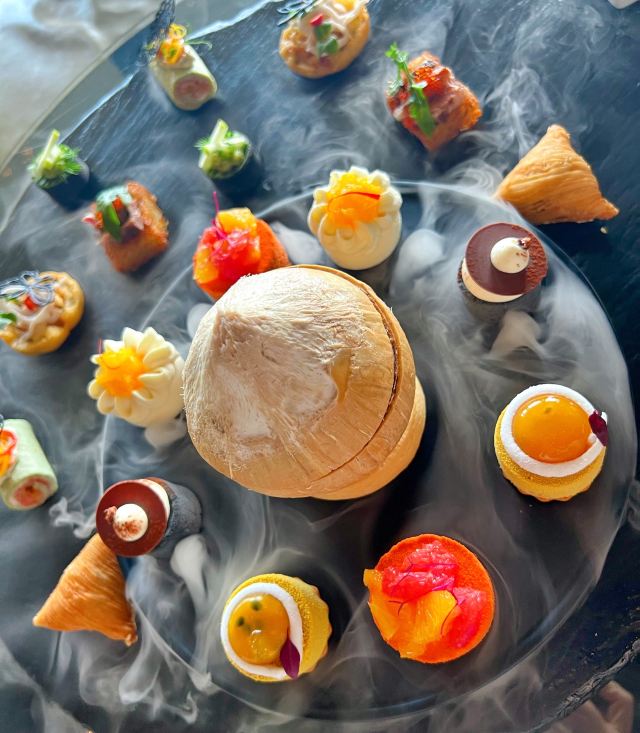 艾迪逊椰子奶冻,招牌香蕉蛋糕,黑松露芝士薯条,澳洲迷你鹅肝汉堡,咖啡,兔子,小食,起泡酒,海景明星下午茶,自选招牌鸡尾酒,罗望子树大道,桔彩星光,红酒,金汤力