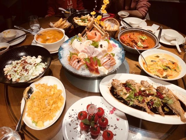 番茄脆果沙拉,新加坡辣椒螃蟹,大漠烤羊排,咖喱牛腩,黑松露煎焗鸡,传统毛血旺,浓汤烩三鲜,青蟹蒸肉饼,玫瑰椒炒草饲牛肉,三葱爆虾,重庆辣子鸡,老醋黄花鱼,夫妻肺片,酸菜肉沫粉条,红烧肉,原味笋干烧肉,浓汤盐卤豆腐,鲍汁羊肚菌豆腐,潭牛文昌鸡,番茄脆菇沙拉,玫瑰椒炒澳洲草饲牛肉,麻婆豆腐,笋干烧牛腩,经典鲜椒鲈鱼,咖喱时蔬