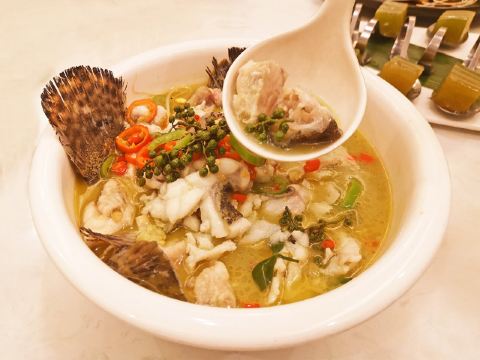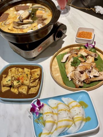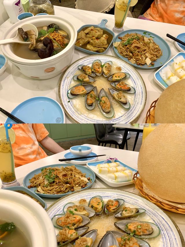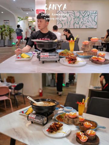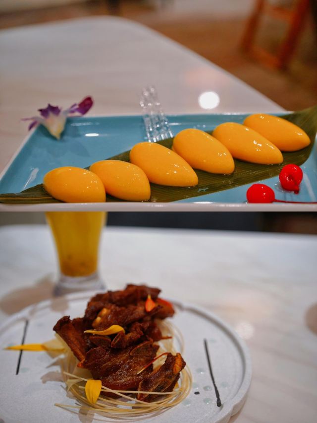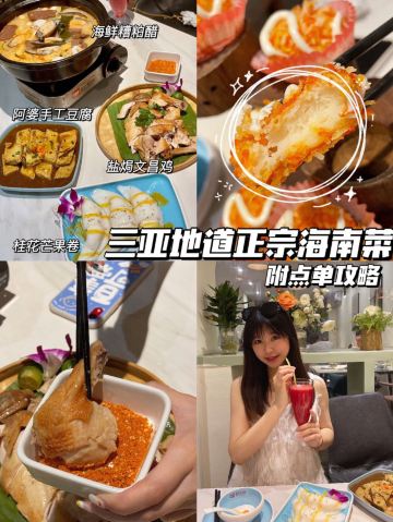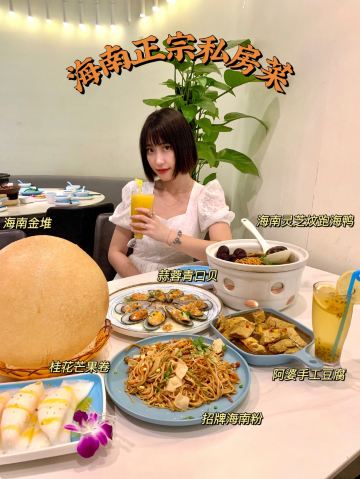 YoYo_2Y2B6J3W作为我在三亚的第一顿晚餐 我选了这家本地人比较推荐的海南餐馆 距离我住的地方也不远 · 推荐菜 海鲜糟粕醋 一开始还以为是冬阴功汤 后来服务员介绍说这是 海南特色传统菜、每桌必点 连喝了好几碗汤、酸辣口感 有点上头、一锅里料很足 鹌鹑蛋、大虾、墨鱼仔… · 步步高升虾球 强烈推荐! 不是那种用面粉裹的 红色外皮一口下去 满满虾肉、外酥里嫩 · 桂花芒果卷 大夏天最快乐的事 就是可以猛吃芒果 点了这份吃到爽 凉皮裹大块芒果 奶油加的正正好好 不会过于甜腻~ · 阿婆手工豆腐 这款拌饭绝佳 纯手工制作所以豆腐很嫩 汤汁也烧的比较有味道 · 我下了飞机放好行李 先去的椰梦长廊拍照、拍完就去的他们家 生意超好、餐厅整体环境很有热带气息 基本都是游客、人不算少 建议早点去、需要排队一会儿~