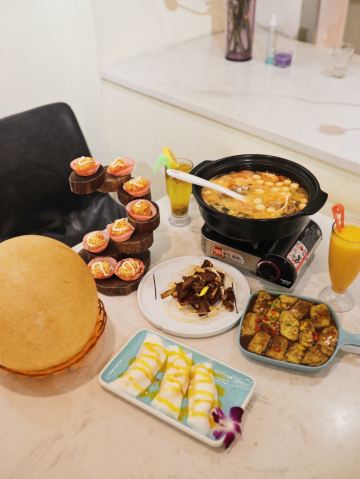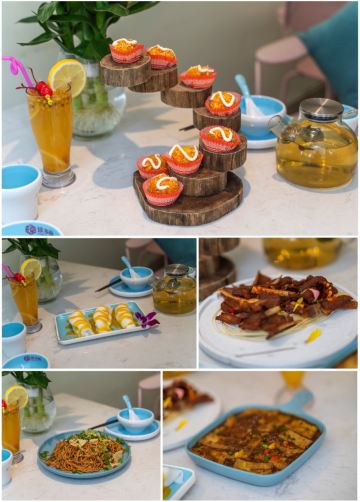 椰香芒果卷,海南椰子饭,白切文昌鸡,盐焗东山羊,山捞叶炒鸡,阿婆手工豆腐,招牌海南粉,海南黎族特色烤鱼,清补凉,干烧五指山带皮小黄牛,海南铺前糟粕醋,捞叶炒树上的鸡,文昌鸡,椰子饭,东山羊