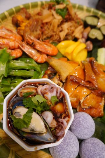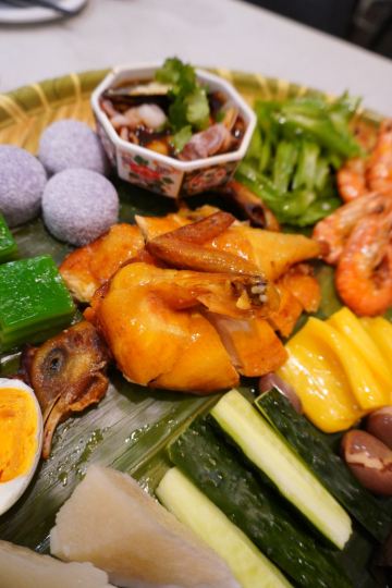QIONG XIANG GE海南簸箕饭真的绝!没吃过的姐妹快冲! 来海南六年了!还是第一次吃到簸箕饭!咱就是说这一簸箕的内容也太丰富了吧!可以说是应有尽有了!文昌鸡、藤桥排骨、避风塘虾🦐、椰子饭、斑斓糕、炒海南粉、炒四角豆….可以说我爱吃的都在这一簸箕里了!我还单点了一个榴莲虾!爱吃榴莲的姐妹可以尝一下,味道很不错哦! ps店铺位置靠近三亚湾,吃完还可以去海边溜达溜达,这位置不要太优越!停车位也不用担心,停在店铺旁边的酒店就行,用餐结束前台还会给免费的停车票,姐妹们别忘记要!
