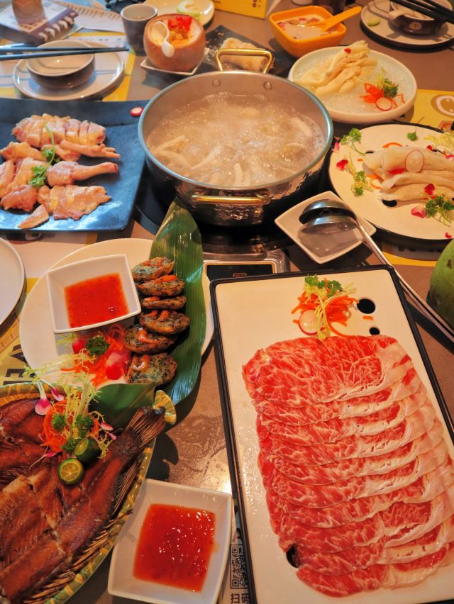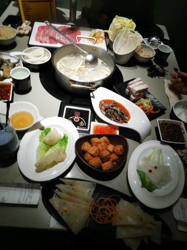 1⃣️ 澳洲雪花西冷生肉 牛肉的品质非常好 ,清晰可见的纹理烫上几秒钟吃,超级香嫩 2⃣️海南清补凉 海南的特色美食,答应我必须点!这家的清补凉是我吃过最好吃的,配料非常丰富,里面有绿豆、红枣、薏米、芋头、通心粉等,吃起来软香丰富,一定要点一份。 3⃣️酥嫩冲浪鱼 这个鱼表扬一下,外酥里嫩,好吃到词穷 4⃣️竹荪虾滑 很特别的一道菜,竹笋里面挤满了虾滑,我和我朋友都觉得超好吃~ -