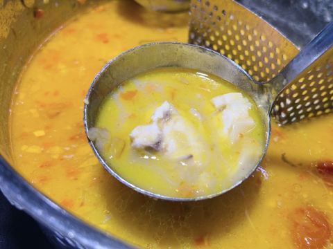 糟粕醋在海南是一道家常菜,基本上每家饭店都有。吃法类似于火锅,可以随意投放各种食材,放入海鲜,就是海鲜火锅,放入文昌鸡,就是文昌鸡火锅,放入东山羊,就是东山羊火锅,再配上疏菜、水果,一锅便是一席。 这么大众化的一道菜,为什么唯独“太琼”这家特别能上榜,最大的原因可能就在于“服务”。太琼的服务很象“海底捞”,无微不至,连虾都给你现剥现吃。 另外,脆皮鳗鱼、带皮小黄牛也较有特色,太琼有好几家分店,在三亚值得一试。