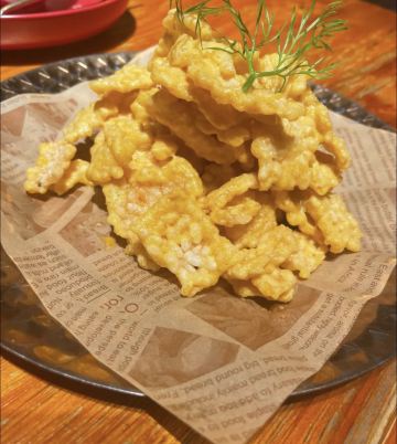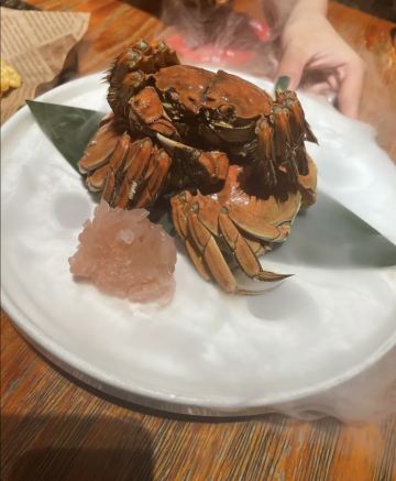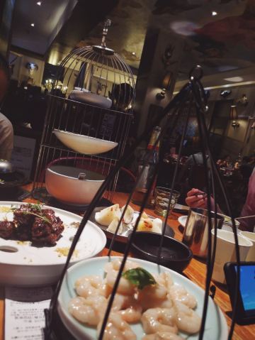ROYAL FUSION「惹味山楂鹅肝」这绝对是我吃过最最最好吃的鹅肝,因为有薄薄的山楂片包裹着所以一点都不腻 「干锅有机花菜」炒菜花当然是既有营养又下饭的神器啦。 「蟹蛋黄锅巴」作为等待主菜来临前的小食最合适不过。 朋友昨天吃过一次了,强力安利我,一天吃两次根本不会腻 环境:很多地方都是女孩子的📷胜地哦 服务:因为人实在实在是太多了,但可以看出服务人员已经在尽全力照顾了客人了。
