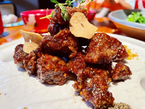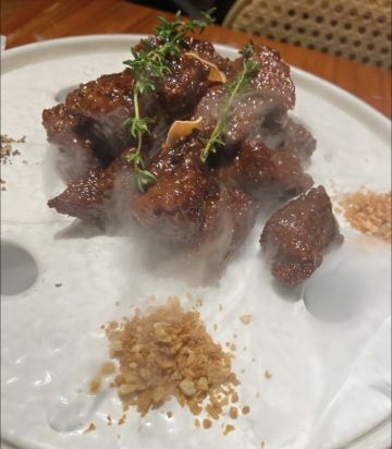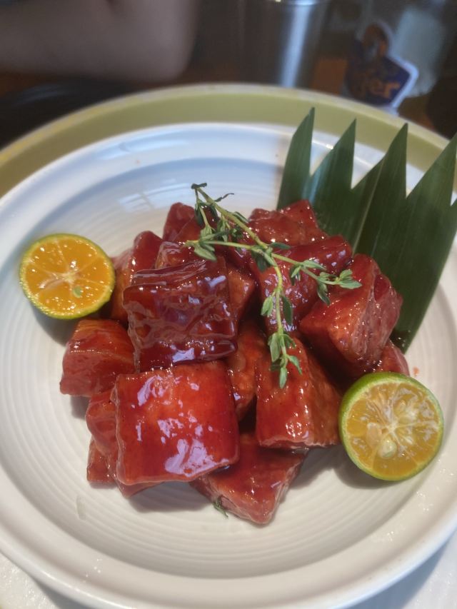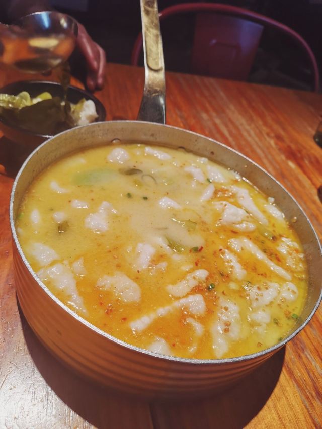 辛玉米三亚探店|时髦酒吧里品尝私房菜🍴 - 听三亚本地的朋友推荐的餐厅🍴几乎每天都要排队,人气很火爆~ - 我去的是新装修的青春颂店,环境很时髦,一进店以为去了酒吧,金属元素与宫廷风强烈碰撞~ - 🔹风生水起 上菜的时候有一个捞起仪式(感觉去了海底捞hahaha),寓意风生水起!鱼片新鲜嫩滑~还没有刺~ - 🔹极品牛仔粒 牛肉粒肉质细嫩可口,浓郁的牛肉香味,可以搭配烤蒜片一起吃,口感层次更丰富! - 🔹山楂鹅肝 简直就是艺术品,不舍得下手!山楂与鹅肝的奇妙碰撞,口感很特别~ - 🔹滋滋有味大盘鱼 很大一盘分量很足~是选用龙利鱼,鱼肉扎实没有什么刺,吸收了汤底的精华,鲜嫩多汁,酸酸甜甜很开胃~ - 总的来说味道和环境双在线,性价比很高可以试试~ - 宫满西廷(青春颂店) 📍 迎宾路青春颂广场百果园隔壁 -