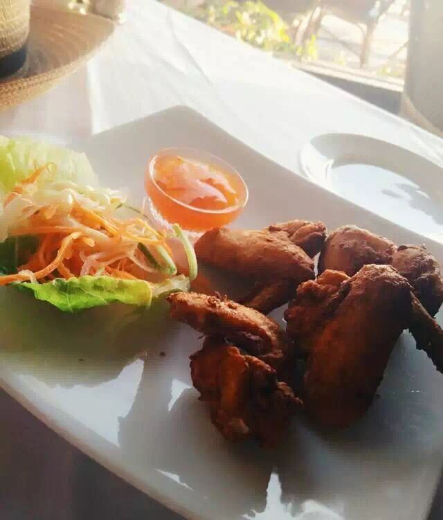 在白沙滩海边的一个西餐厅,里面的炸鸡翅很好吃的哦,吃了齿颊留香哦,那个披萨饼的味道也很不错的,海鲜汤做的有点点辣,味道不错。
