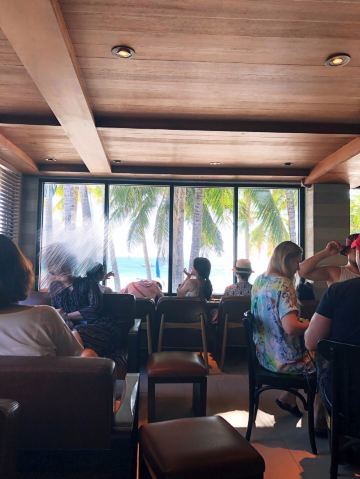 这家星巴克在白沙滩大街上,人挺多,需要排队。门口最旁边的架子上有各种杯子卖,还有当地特色的纪念杯。这里饮品的种类和国内大致差不多,价格却便宜了很多。楼上靠窗的位子很赞,看出去是一片椰子树,白白的沙滩,蓝蓝的海,很惬意。