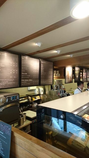 【Boracay go go】 2019.3.6 岛上难得一家店空调开得如此足,甚至还想披一件外套在身上,一楼点单被冻得瑟瑟发抖,二楼稍微好些。 也是海滩上难得可以外带食品的店,反正不得遭幺出去。我们分别点了抹茶星冰乐,卡布奇诺,冰摇石榴茶。 价格比国内便宜,抹茶星冰乐大杯215₱,大约人民币28元。冰摇茶中杯170₱,人民币22元。 奇怪的是热饮冷饮统一用纸杯装,所以也是因为环保不用塑料吗?反正岛上的吸管好像全都是纸的。 店内带卫生间,还是岛上难得厕所免费。 虽然味道啥的跟所有星巴克连锁没差别,鉴于店本身有这么多优点还是好评一个。