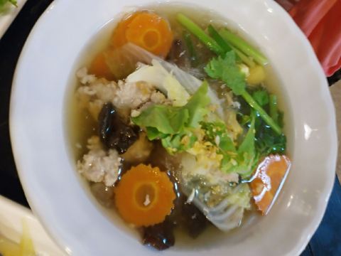 Massaman甲米的第一餐,人均70RMB以内可以吃到这些,物价感人。 柠檬鱼,鱼肉鲜嫩,柠檬和香料调味,酸辣入味,炎热天气里吃蛮开胃的。 炒空心菜,空心菜略有点老,随便吃吃。 冬阴功汤,泰国的冬阴功汤几乎家家都好喝,这家也是如此,酸酸辣辣,香茅的独特香气最爱了。 咖喱蟹,螃蟹不是活蟹,略有点影响口感。但毕竟价格摆在这里,要求不能太多。 菠萝猪肉炒饭,一份炒饭装满了整只菠萝,菠萝的水果香气和猪肉炒饭特别搭调,一份几乎都吃光了。 芒果糯米饭,饭后甜品,芒果real甜,椰浆和糯米饭也喜欢。 绿奶茶,这么热的天气里,来一杯冰爽的奶茶太幸福了。 柠檬茶,泰式柠檬茶的味道,还是更喜欢绿奶茶。 敞开式环境,感受下东南亚的原生态也蛮好的。