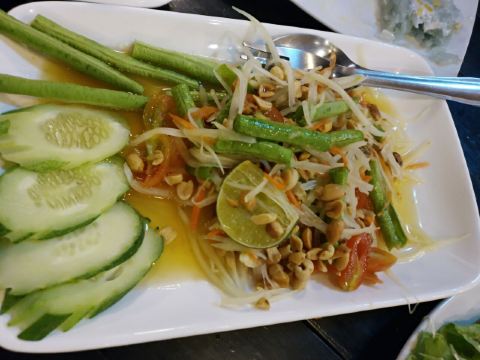 甲米Top10餐厅之一,很受当地人和游客的喜欢,人气很高。餐厅经营地道泰国菜,冬阴功汤、青木瓜沙律、腰果炒河粉等泰式经典都做得口味一流。价格非常实惠,人均70左右就能吃得相当好了。