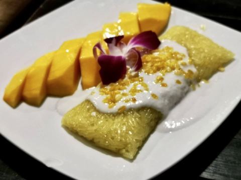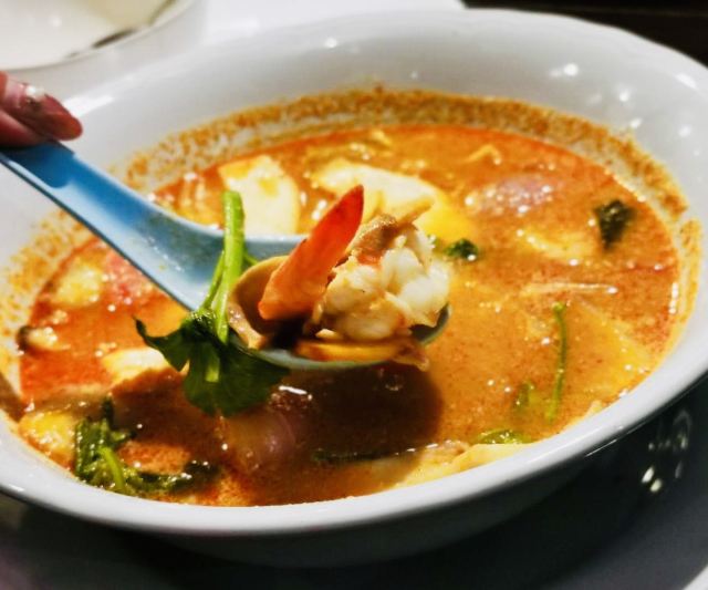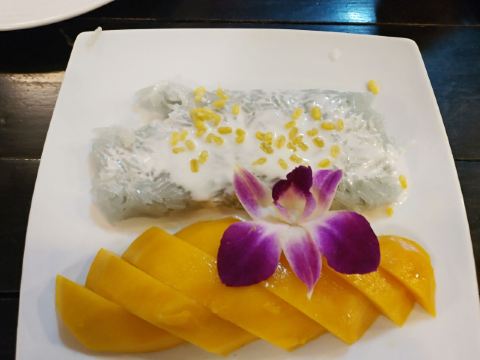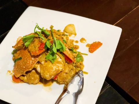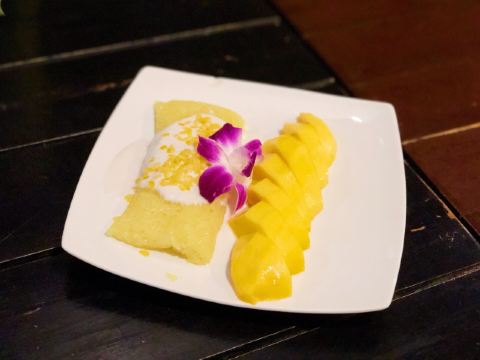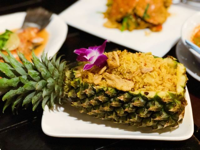 芒果糯米饭,椰奶海鲜汤,蚝油炒通菜,青咖喱杂菜,马沙文咖喱鸡,咖喱炒蟹,冬阴功汤,泰式咖喱蟹,菠萝炒饭