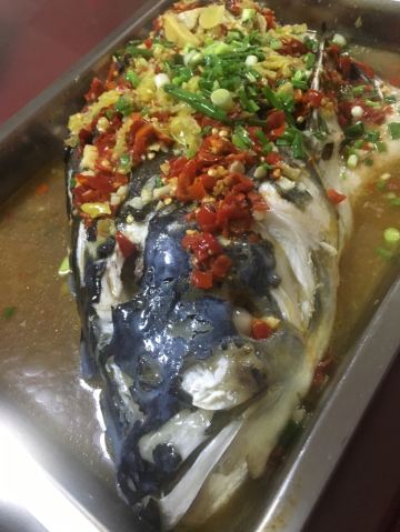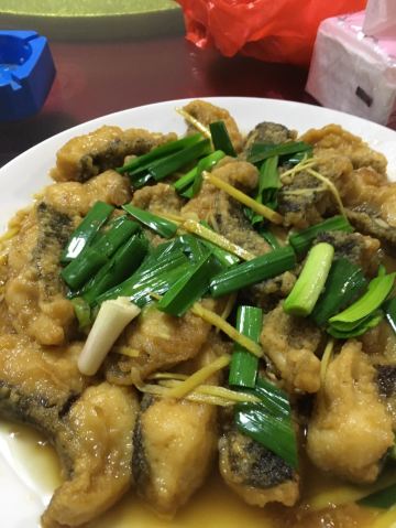 旅游度假三赖鲜鱼馆,是一家以水库大鱼为主的餐馆,一鱼多吃:鱼头剁椒清蒸,鱼骨加豆腐煮汤,鱼肉切条红烧。虽然每种做法不同,但都很美味,特别喜欢大鱼头,白白嫩嫩的鱼腮肉。除了鱼外,土鸡也是很美味,金黄的皮,鸡肉结实,很有嚼劲。红枣糕,作为餐后甜点,可以解除正餐的油腻。