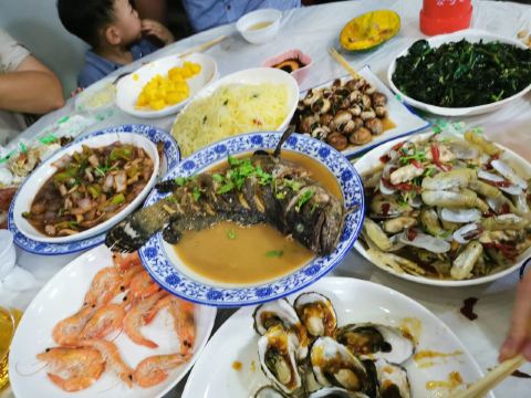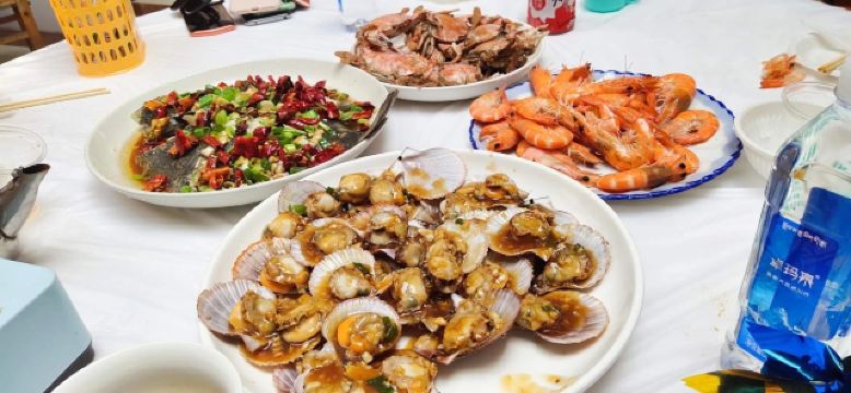 第一次来日照渔家,找了携程全好评的海涛家,美好的体验!小两口是很实在的海边儿人,婆婆也很和善!点了青斑,梭子蟹,温拌海螺,海兔子,花蛤,拌海草,都很喜欢💕尤其是鱼,新鲜极了!海涛家可住可餐,比较靠里,可以打电话老板娘出来接!