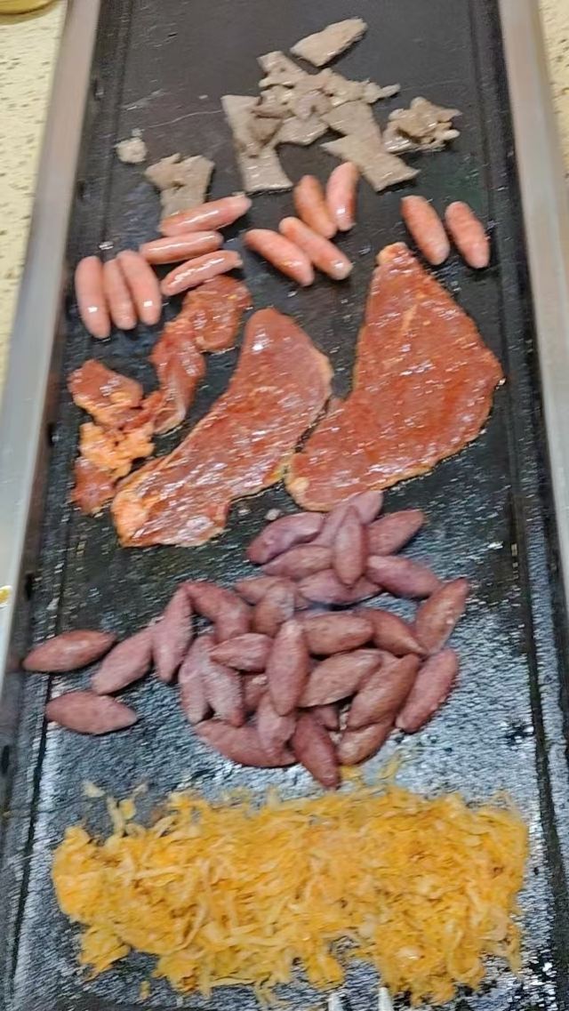 YoYo_0Q4M9A3V口味:火山石板烤肉体验:烟火气与美味的双重暴击! 周日约上好友打卡了火山石板烤肉,从进门那刻就被店内热闹氛围吸引!复古工业风混搭火山元素,墙上的岩浆壁画超酷,音乐节奏带感,拍照分分钟出片📸 点了招牌雪花牛肉和秘制五花肉,石板加热后滋滋冒油的瞬间,香气直钻鼻腔!雪花牛肉纹路超漂亮,在石板上快速翻面,锁住肉汁,蘸上特调酱料,鲜嫩多汁;五花肉烤到金黄微焦,用生菜裹着蒜片、青椒,一口下去,油脂香和蔬菜清爽完美融合,绝了!还有芝士玉米,拉丝超长,奶香浓郁,甜滋滋的超解腻~ 店员超热情,主动帮忙烤肉、换烤盘,还会提醒最佳食用时间。分量超实在,我们三个人吃到撑!唯一小遗憾是周末人多,稍微等了一会儿位,但美食当前,完全值得!下次还要来解锁更多菜品,强烈推荐给爱吃烤肉的宝子们! 🌟