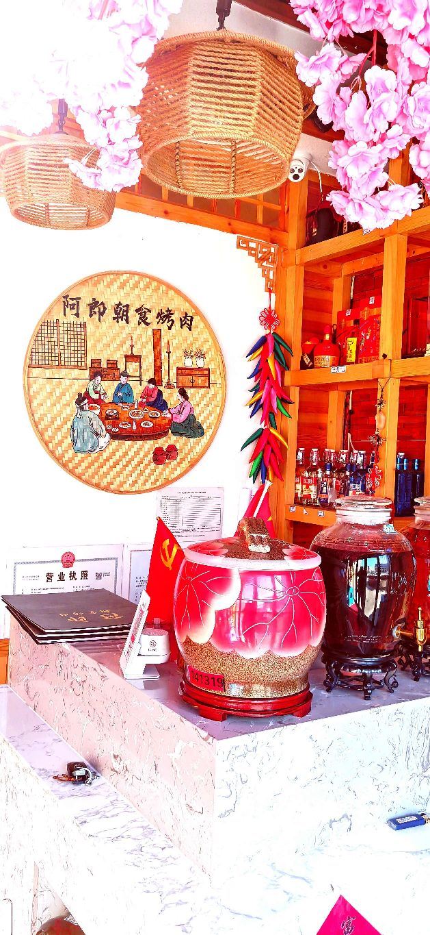 Arang Chaoshi & Barbecue住在云水澜庭,下楼就来到了这个烤肉店,没让人失望哦! 每个桌子都用隔板隔开,别人的烟熏不到而且有自己私密空间。猪五花厚厚的两边烤至金黄很香。牛五花很薄,肥牛的感觉蘸着酱用生菜包裹着吃,超美味,也不感觉上火。辣白菜炒饭好香,泡菜辣辣的,很开胃,东北米饭挺香的土豆饼超软糯虽然不太理解为什么上面有些甜品的小条条,但真的很好吃。大酱汤闻起来真的不太友好,但是吃起来有点辣辣的,而且冬天喝这个真的很暖。米酒是老板自家酿的非常推荐,一定要喝,真的有米的味道,非常棒哦服务也超级好,老板,老板娘真的人太好了,我们吃不完,就让我们晚点来,到时帮我们热热,真的太好了,推荐推荐 这里强烈推荐牛五花,自酿米酒